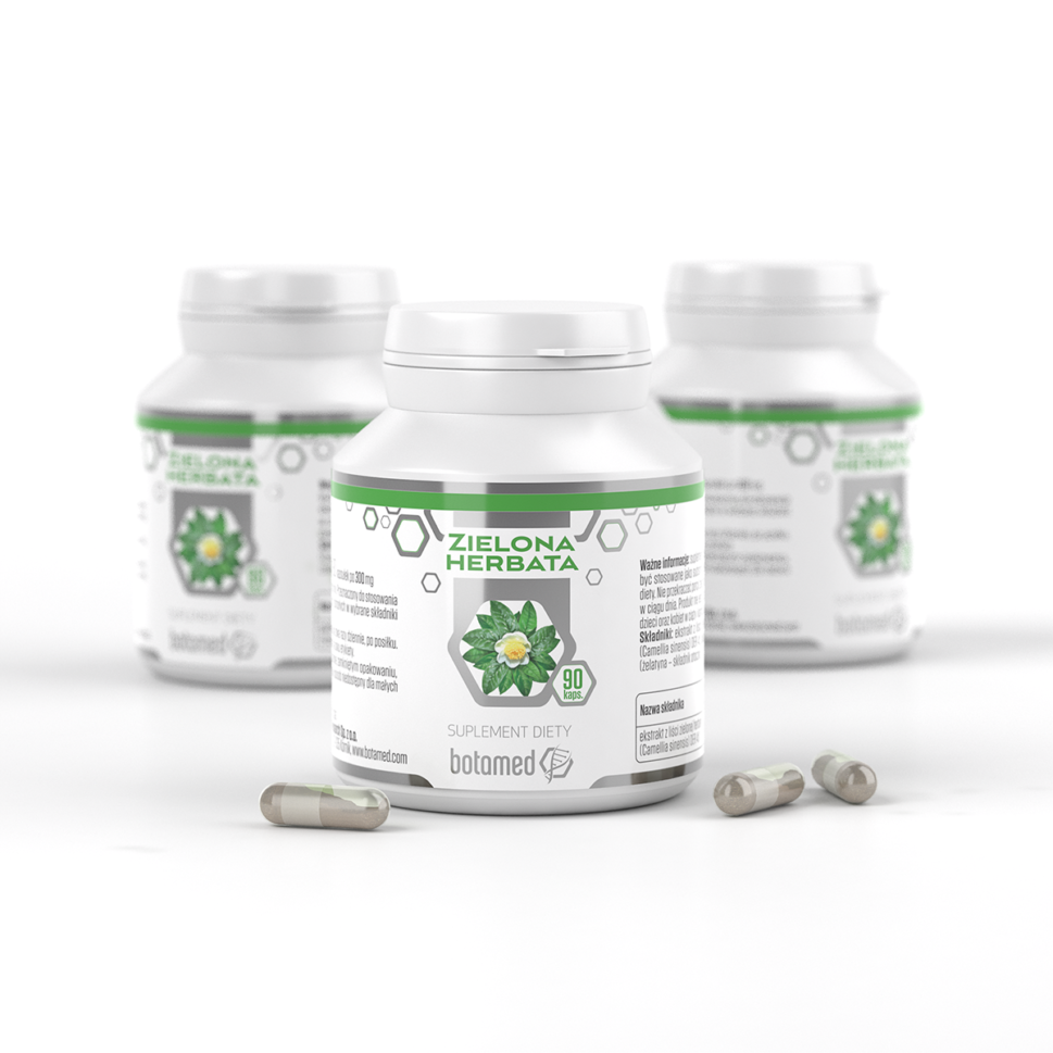 Składniki: ekstrakt z liści zielonej herbaty (Camellia sinensis) DER 4:1, składnik kapsułki (żelatyna – składnik otoczki)
