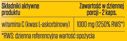 Składniki: witamina C (kwas L-askorbinowy), składnik kapsułki (żelatyna – składnik otoczki)